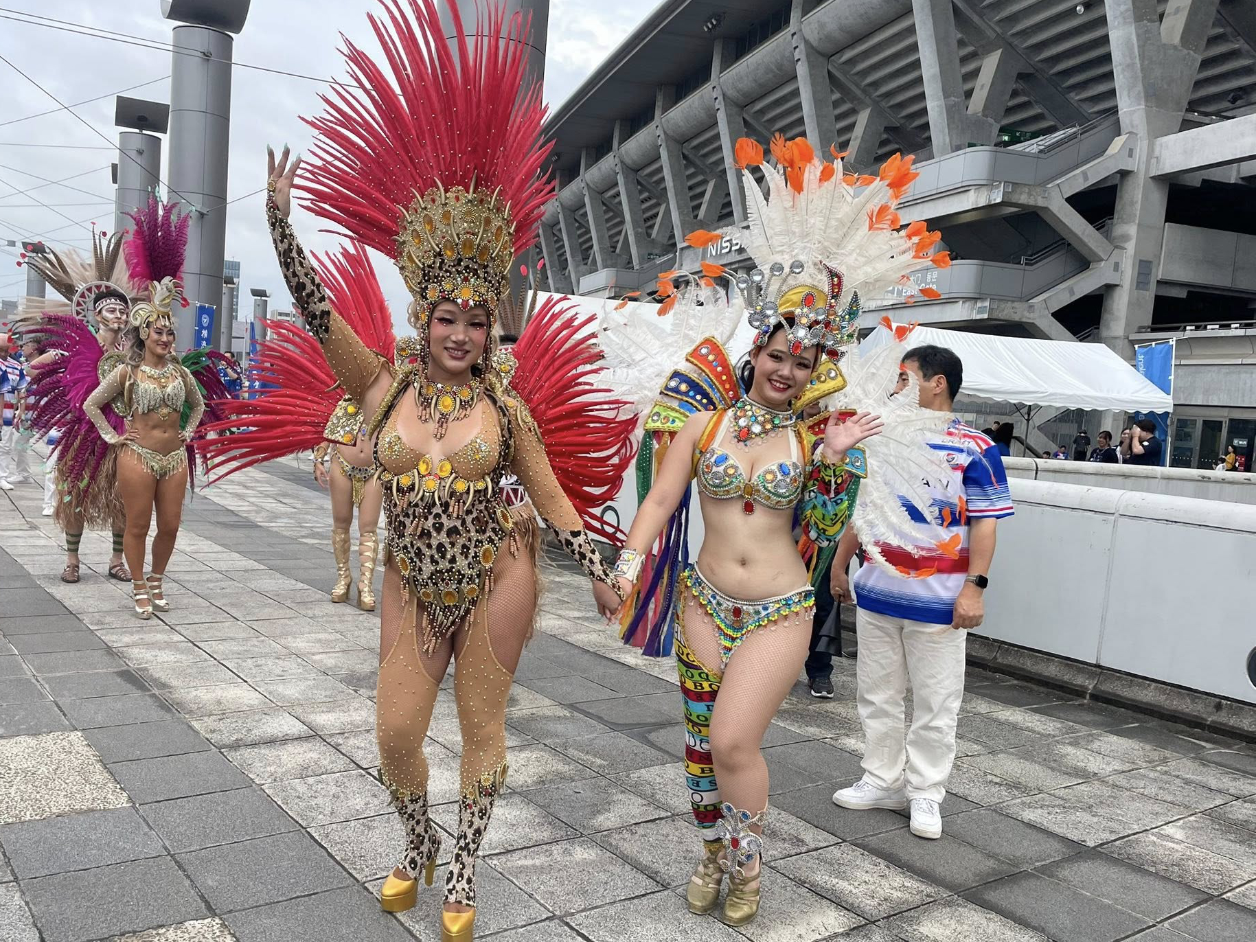 9/20(土)に日産スタジアム(横浜市)で開催された明治安田J1リーグ〈横浜F・マリノス VS アビスパ福岡〉の来場者向けイベント「F・マリノスSDGs FES 2025」(15時~19時)にて、サンバパフォーマンスを披露いたしました。