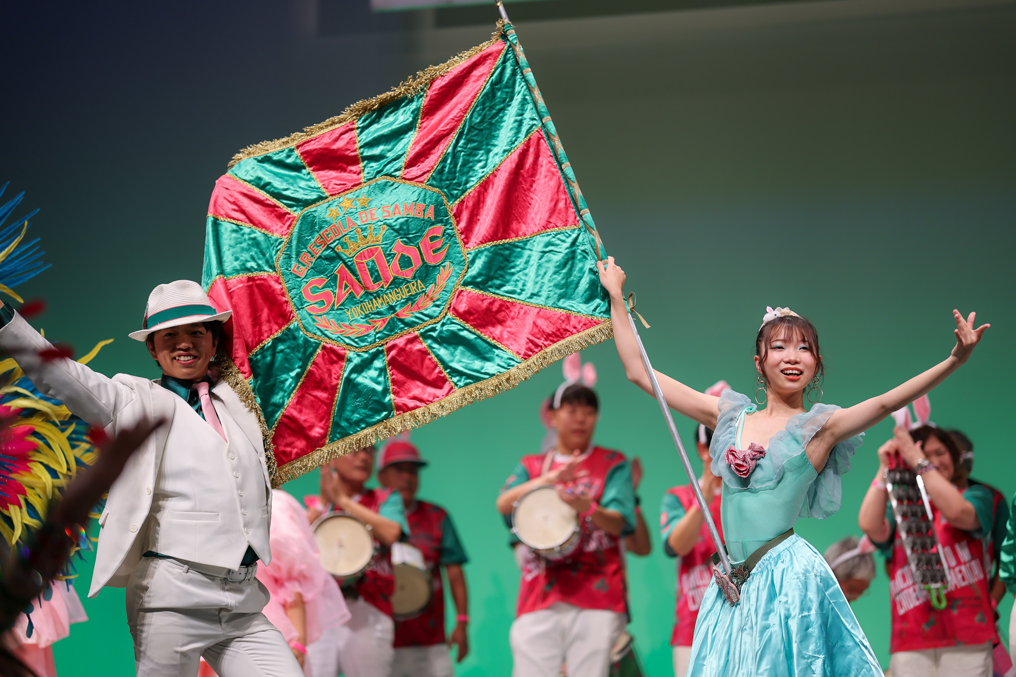サウーヂのステージでは、1曲目に今年の浅草サンバカーニバルのサンバ・ヂ・エンヘード「いのちはめぐる」をお届け。