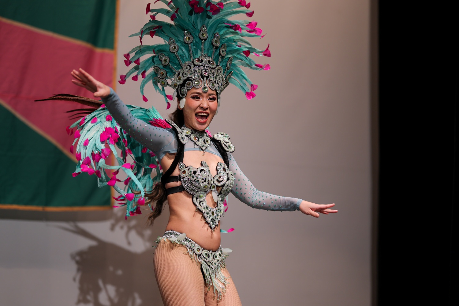 候補者のパフォーマンス終了後、審査が終わるまでの時間には、ダンサーとバテリアがそれぞれ出し物をステージで披露し、結果発表までの会場の緊張をやわらげる一幕も。